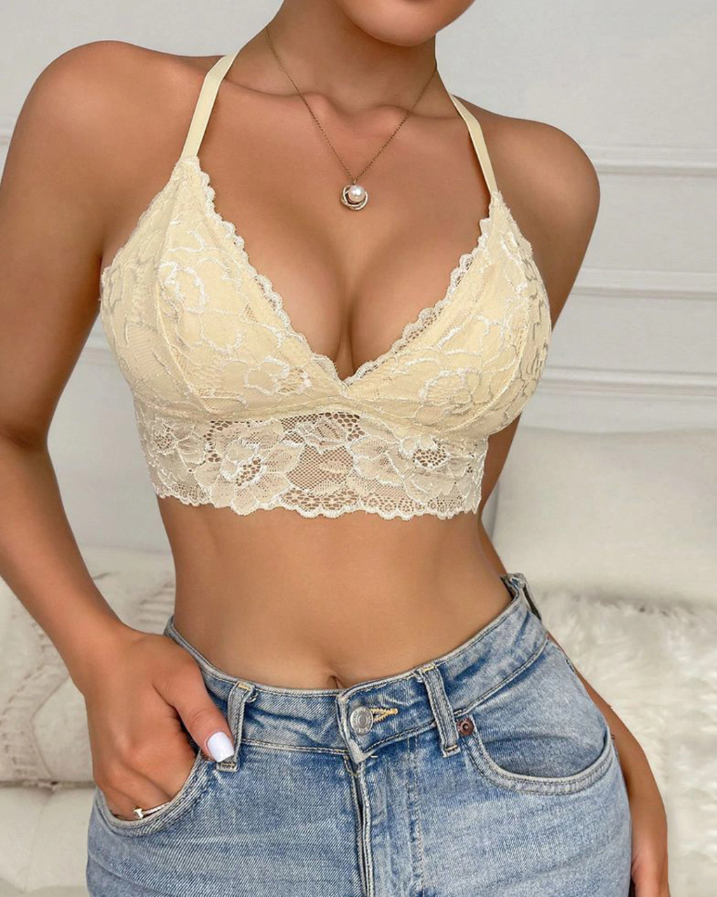 Este bralette es ideal para quienes buscan una prenda que se ajuste a sus necesidades sin perder confort. La puntilla forrada ofrece un tacto suave sobre la piel, mientras que el cierre innovador facilita el uso y el ajuste, brindando un soporte óptimo y personalizado.