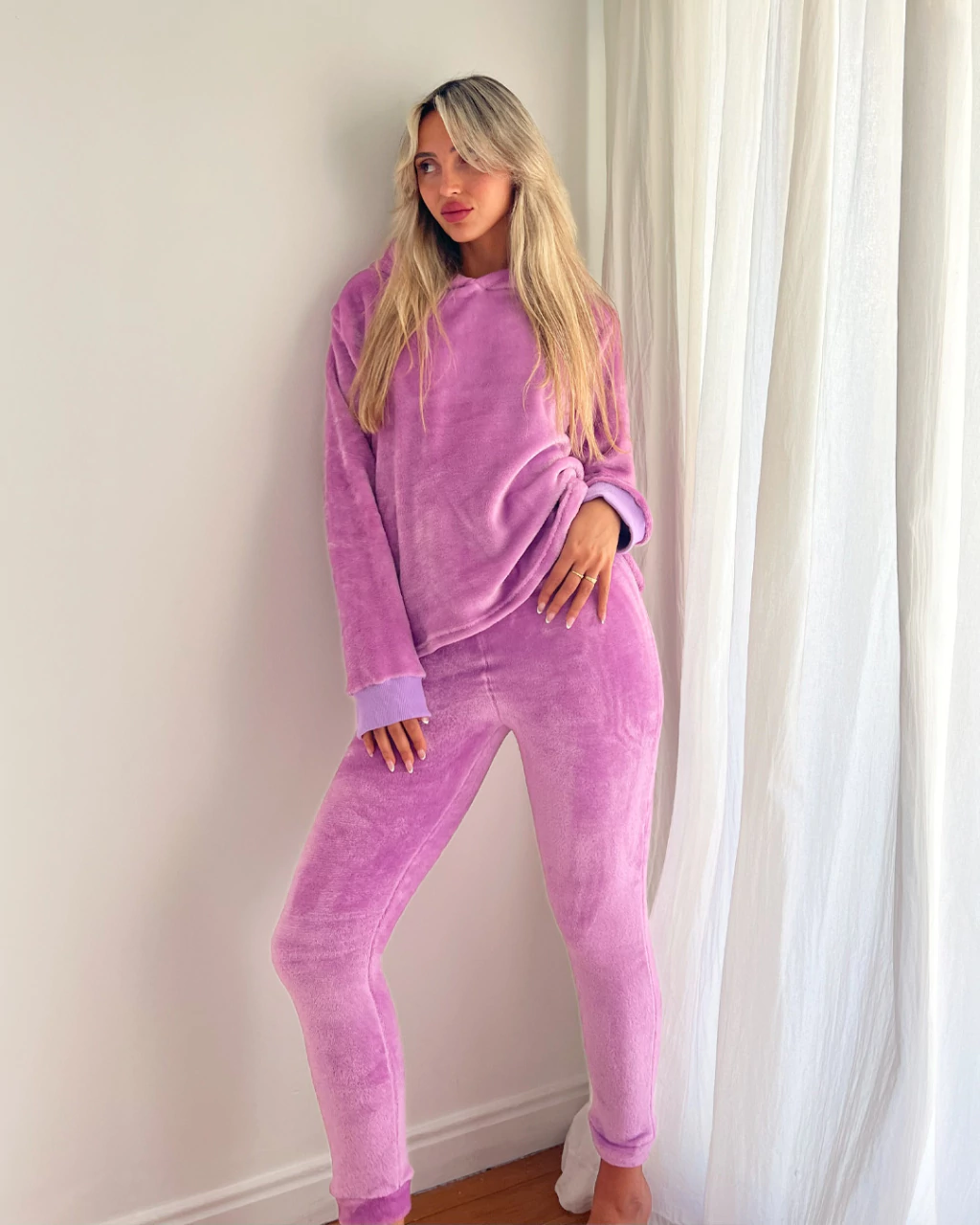 Material Suave y Agradable: Confeccionado en polar soft, este conjunto proporciona una sensación de suavidad en contacto con la piel, ideal para mantenerte abrigada.